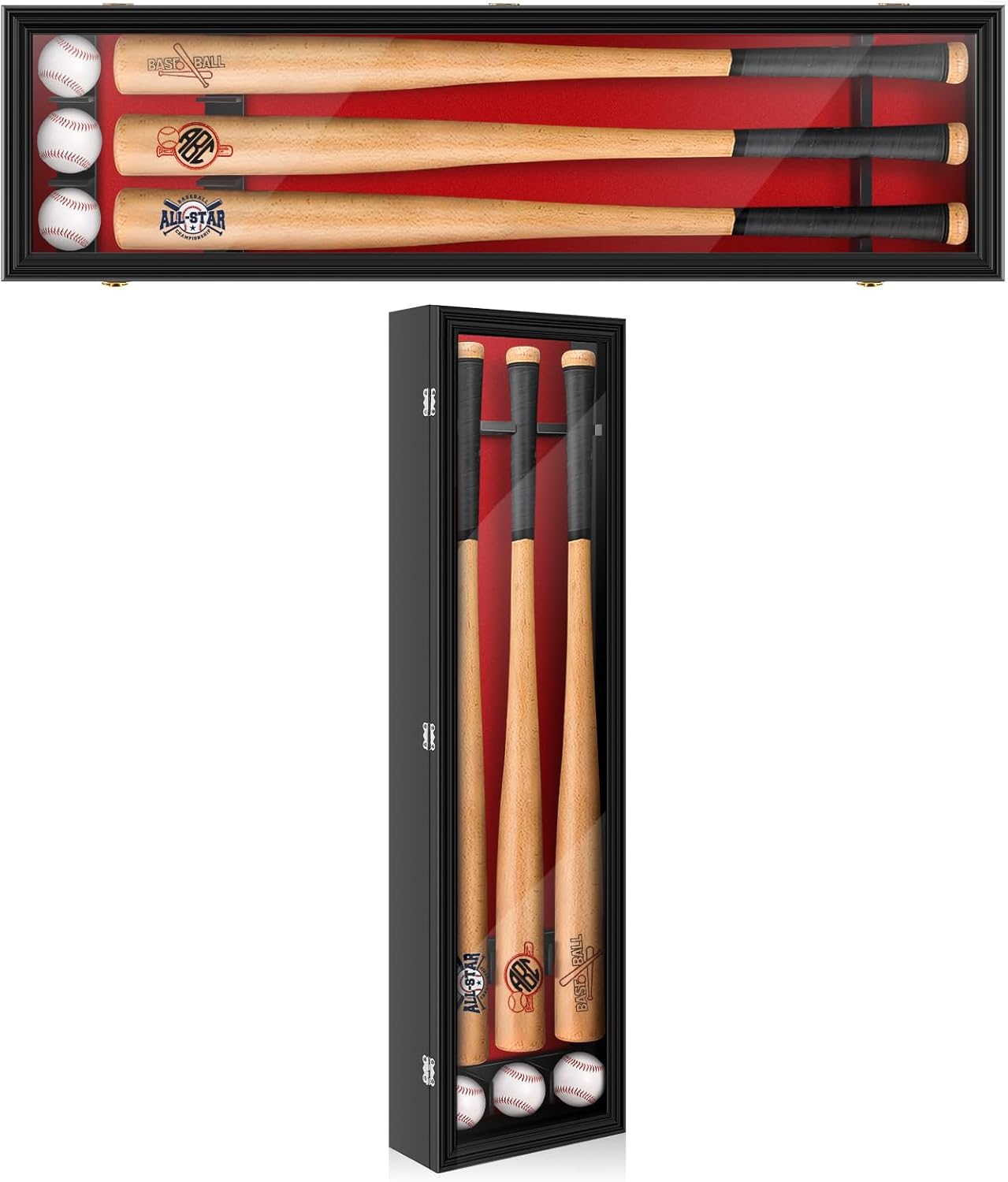 Features: Designed for convenience, our display case arrives ready to use with no assembly required. Its one-piece construction eliminates the hassle of complex setup, allowing you to dive into your collecting journey immediately. Enjoy a seamless and hassle-free experience tailored for collectors. Discover the ultimate mini baseball bat display case! With ample capacity, it holds 16 bats for collectors. Its luxurious handcrafted black finish showcases your collection exquisitely, while UV-protective acrylic doors and secure locks ensure safety. Ready to use for instant display! Specifications: Material: radiata pine Color: black Size: about 21.46 x 19.57 x 2.44 inches/ 54.5 x 49.7 x 6.2 cm Package includes: 1 x Mini baseball bat display case 3 x Mountain-shaped hanging bracket 7 x Expansion screw Notes: Manual measurement, please allow slight errors on size. The color may exist a slight difference due to different screen displays