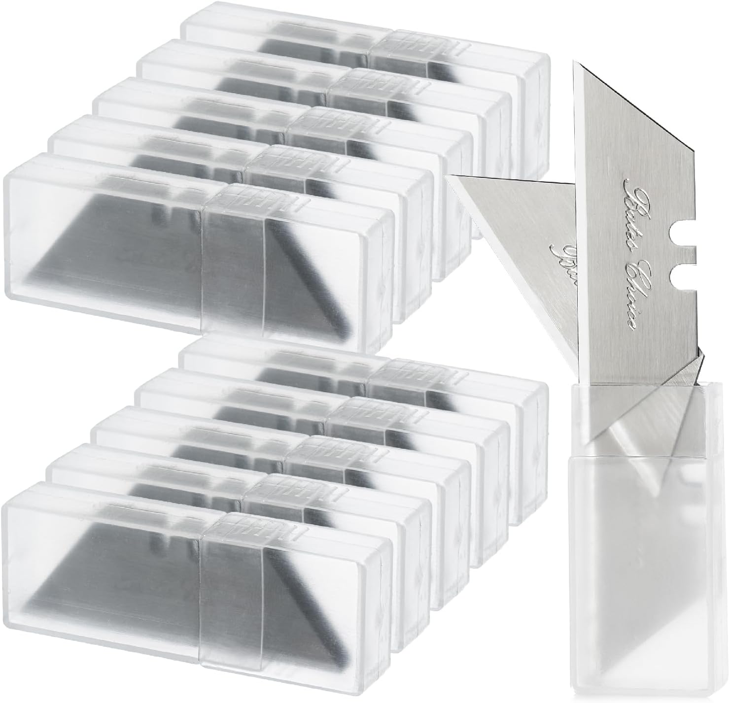 Bates utility knife blades come in a 40-pack, providing a reliable supply of sharp and durable replacement blades for box cutters.They are made from high-quality steel with a titanium-plated gold finish for enhanced strength and corrosion resistance.Each blade is precision-honed to deliver clean, effortless cuts on a variety of materials including cardboard, plastic, and more.The blades are designed to fit most standard utility knives and box cutters, ensuring versatile compatibility.Packaged in a convenient plastic storage case, these blades are easy to organize, transport, and safely store when not in use.